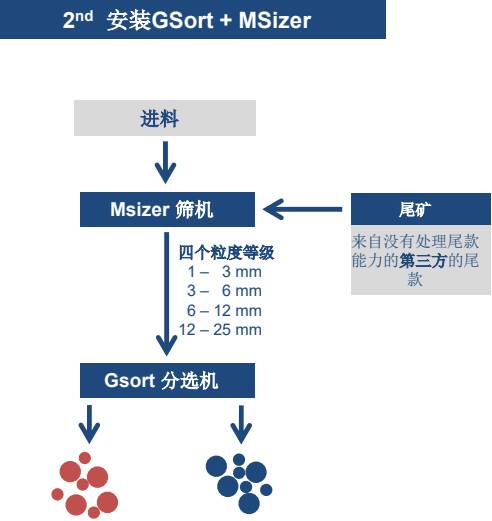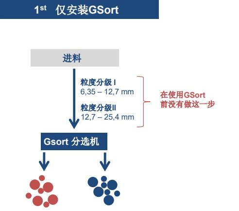 客户 墨西哥最重要的重晶石矿业主在2018决定使用阿盖尔GSort (G19)来升级和改造它的分选工艺 挑战 ● 全部使用传统的湿式分选运行和投资成本高 ● 由于所需废水处理和干燥设备多,需要占据更大的面积,运维成本高 ● 湿式分选法几乎无法分选小的3-25mm的矿石粒度,尤其是分选尾矿 ● 即使分选也只能达到大约 0.05 t/m³的收率 优势 ● 不会产生废水,因此也就不需要处理废水 ● GSort 能根据进料的变化,易于精准地为筛板、风机的风量、振动频率、倾角、出料挡板等调整参数 用两步走实现最后优化方案